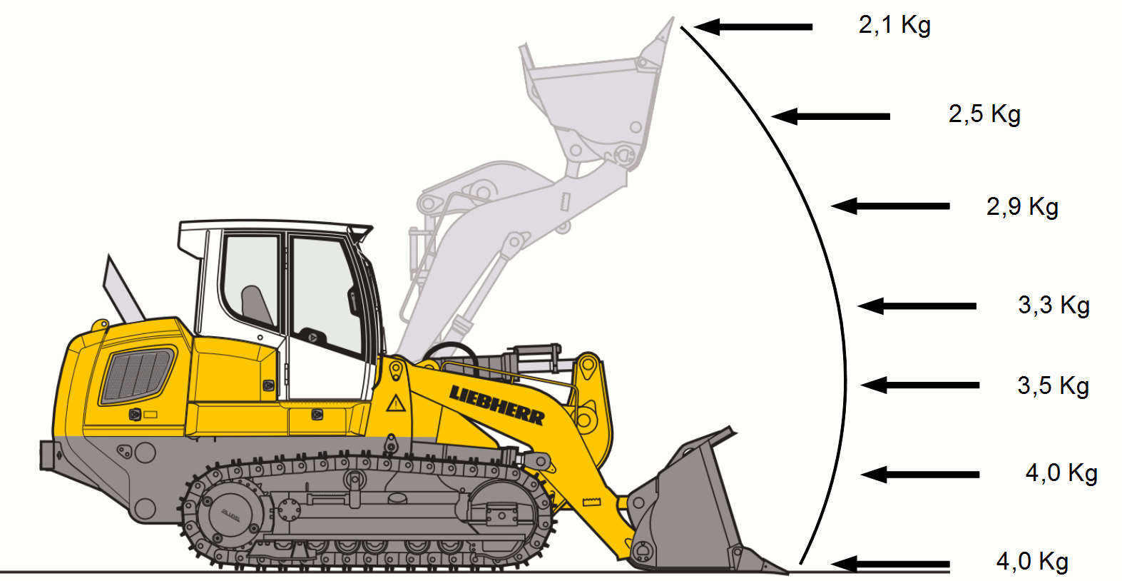 Auf Grund der Kinematik des Hubgerüstes ändern sich in der Laderaupe