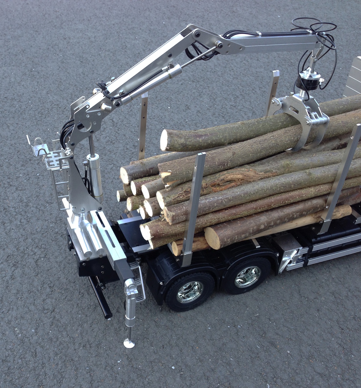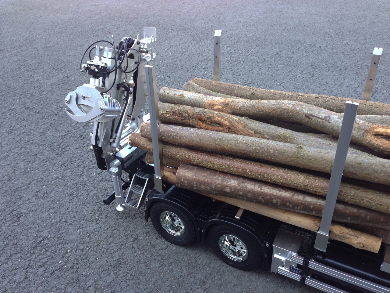Auf Wunsch ist unser Kurzholzladekran, welcher an den von TAMIYA