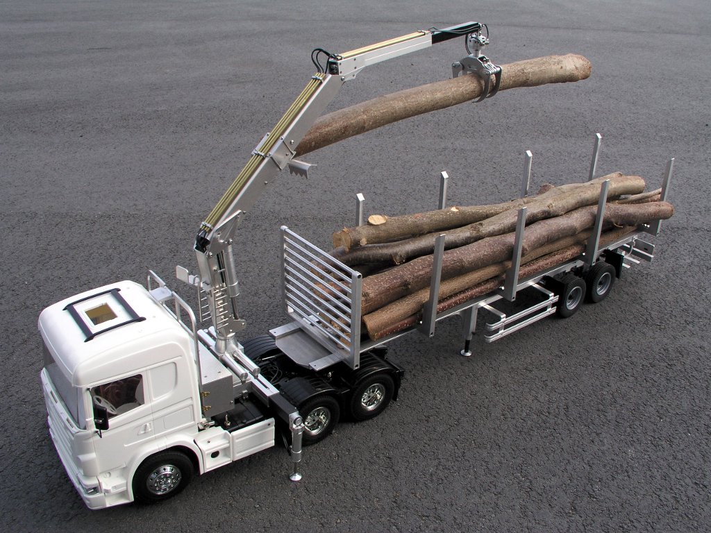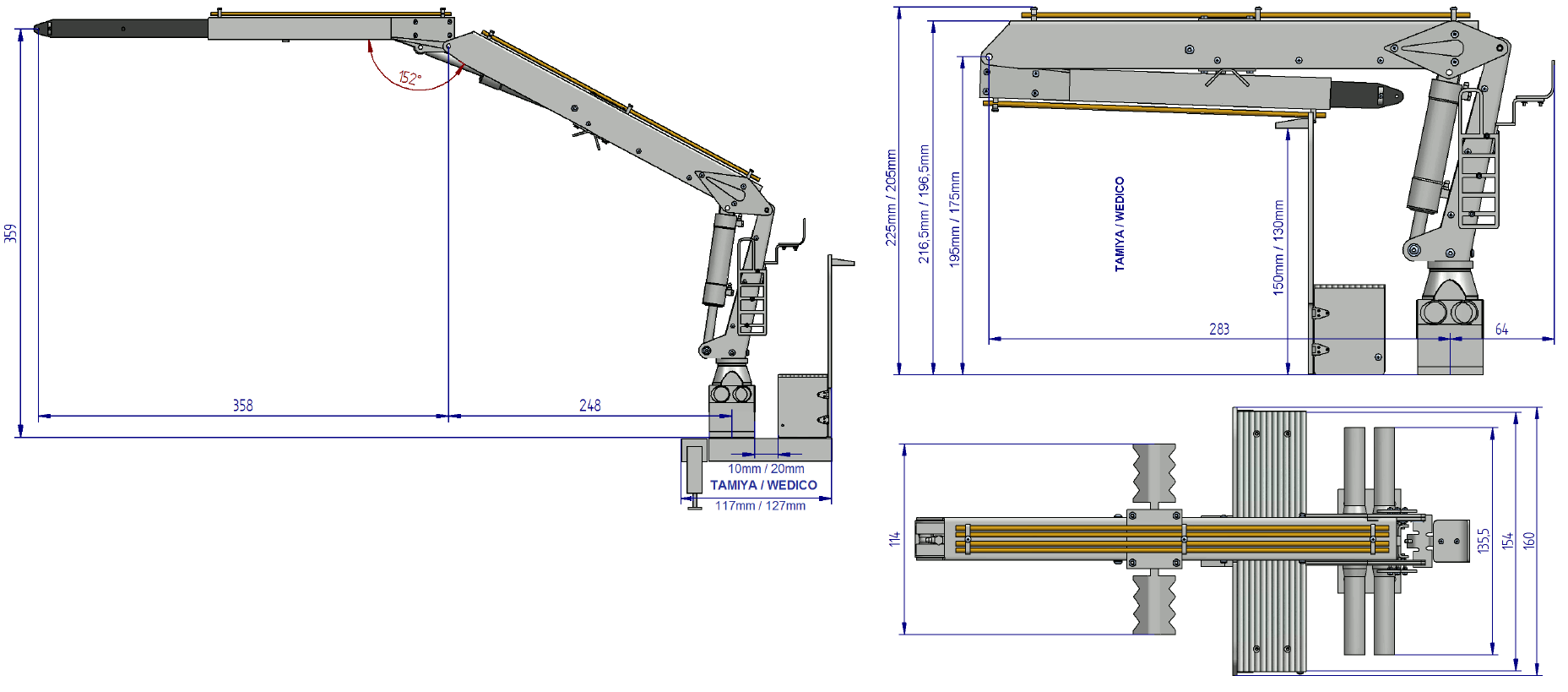 Der Langholzladekran ist sowohl für TAMIYA als auch für WEDICO Fahrzeuge erhältlich.