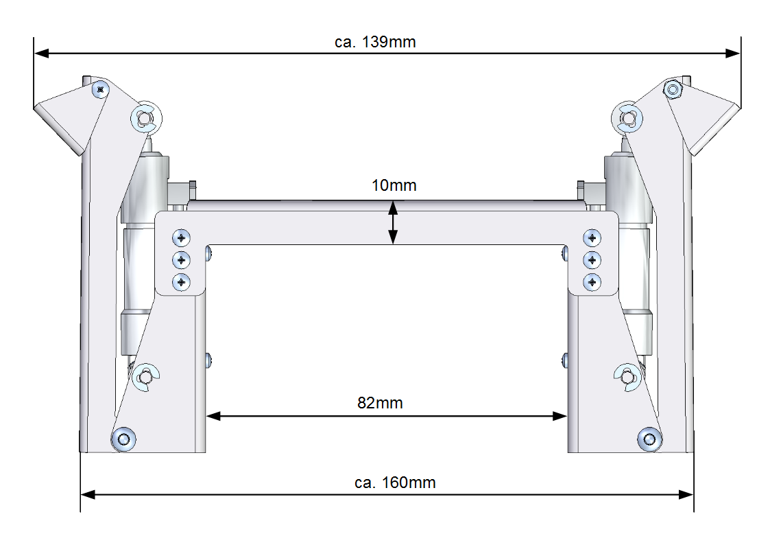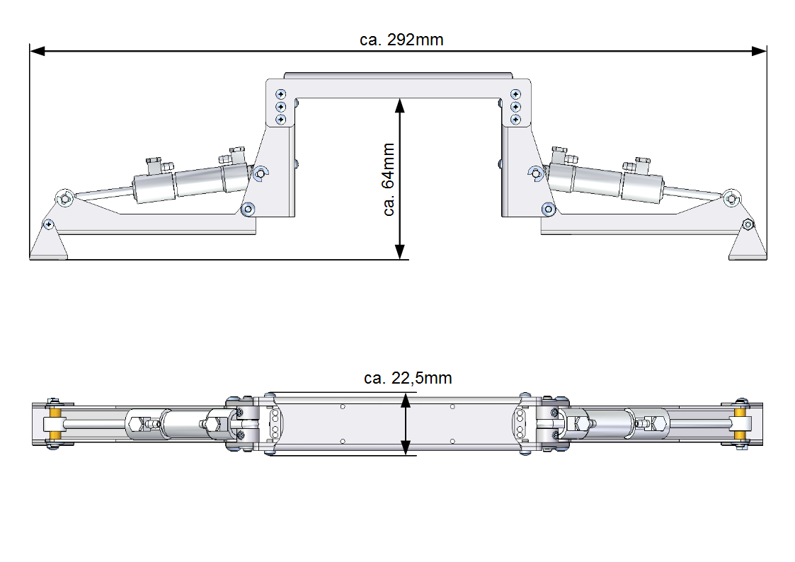 Auf Grund der kleineren Hydraulikzylinder und der Hebelverhältnisse hat diese Abstützung weniger Kraft, wie unsere "normale" Abstützung |
